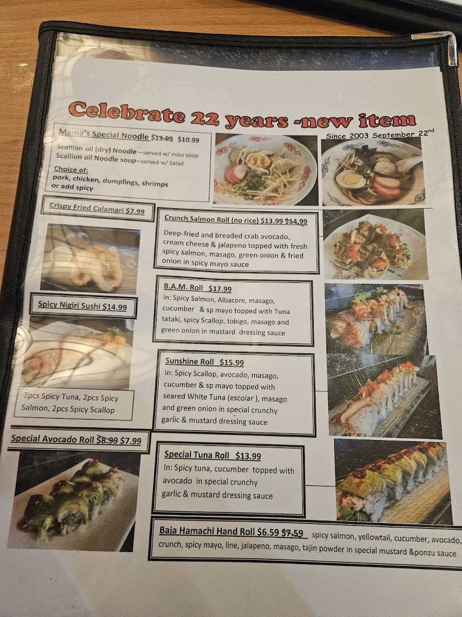 Deep-fried spicy tuna, avocado, cream cheese and cucumber topped w/ baked salmon, jalapeño, crunch in spicy mayo and eel sauce.
