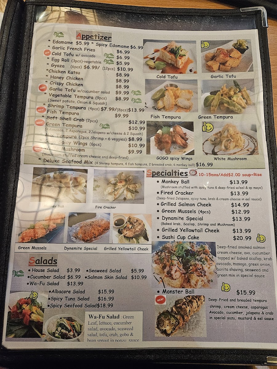 Tempura shrimp, spicy scallop, kebab, cucumber topped of avocado, tuna tatami, albacore, onion in special ponzu sauce